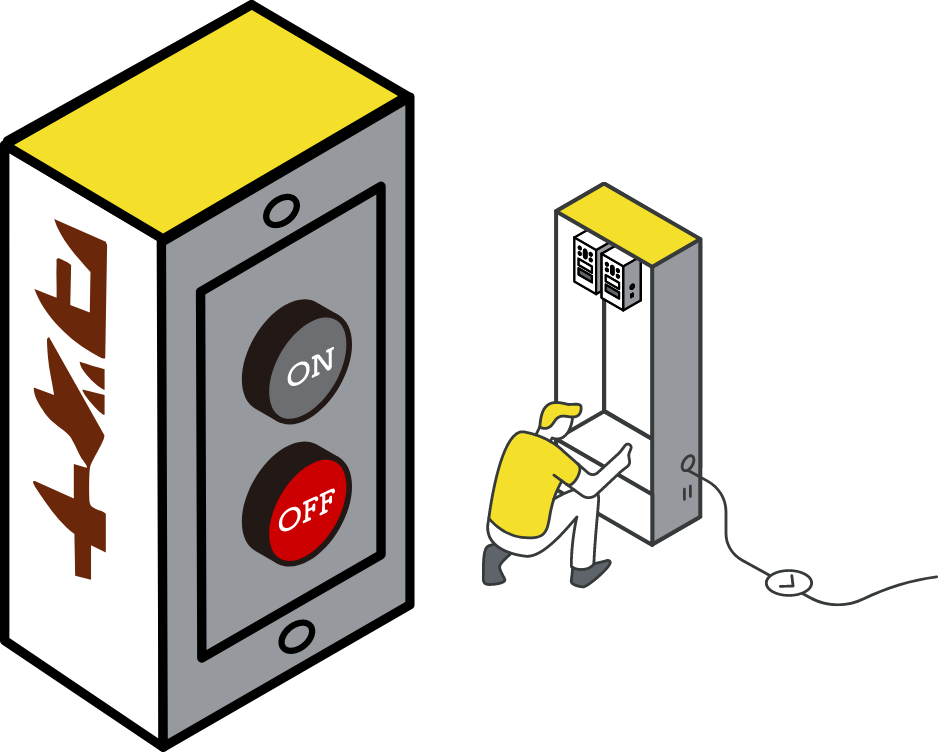 ビルや工場、病院や学校など、たくさんの電気を必要とする施設では、高い電圧から低い電圧へ変換する「受配電設備」が施設内に設置されています。
